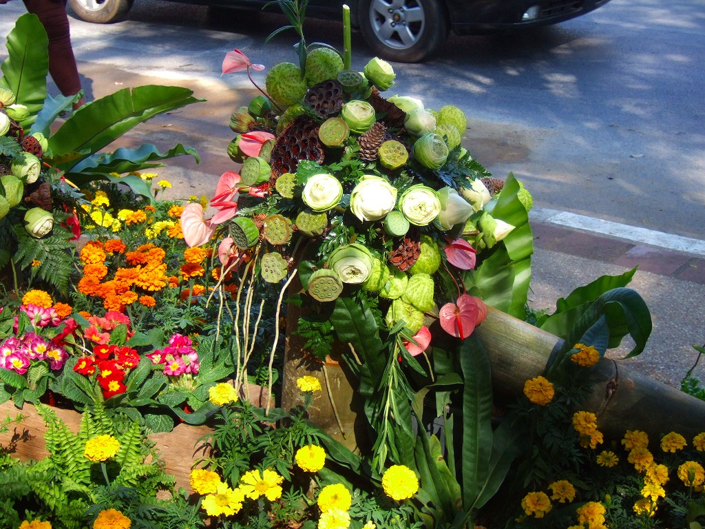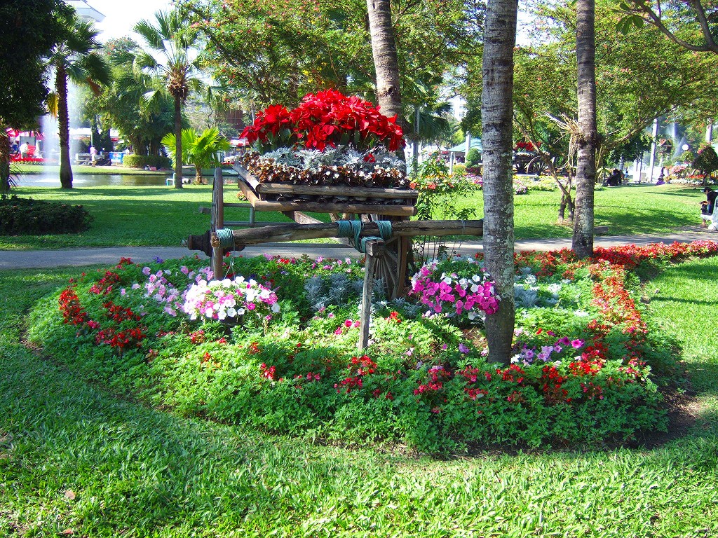 公園内は花祭りの飾り付けであちこちに花飾りが一杯。