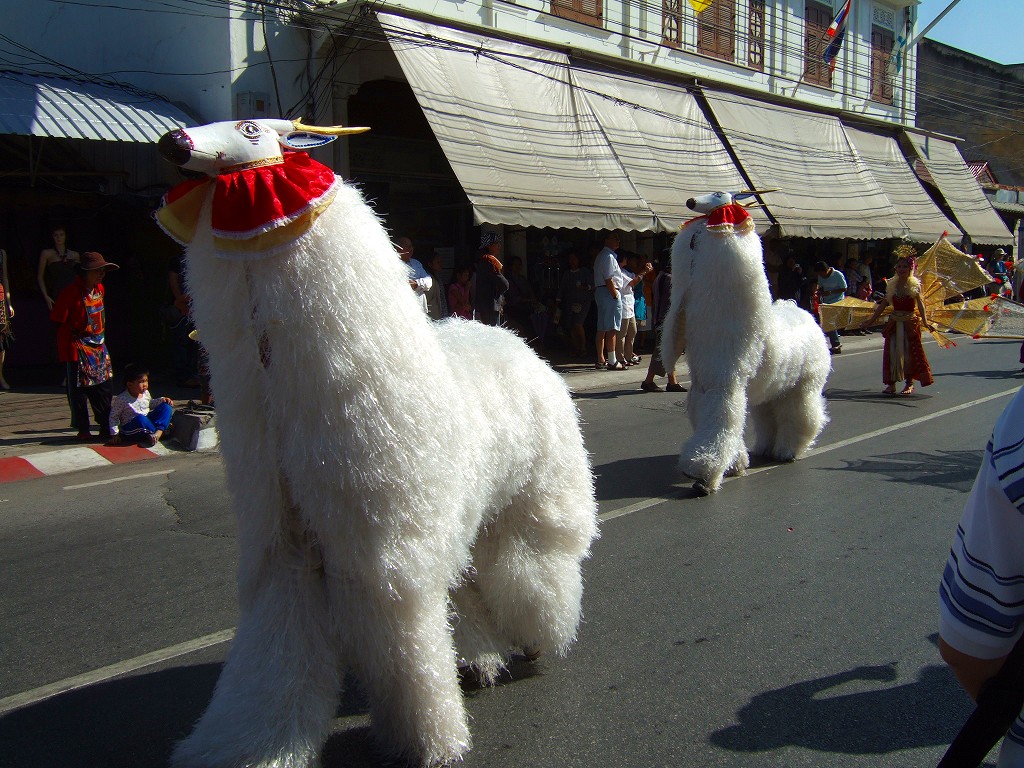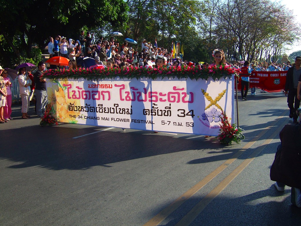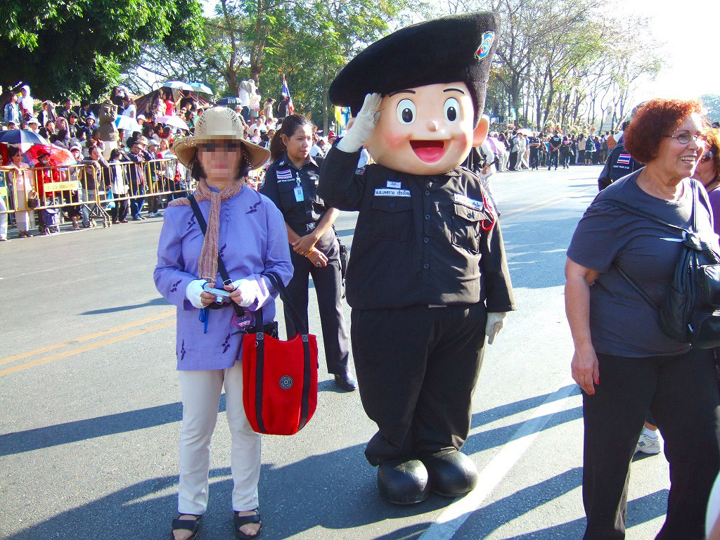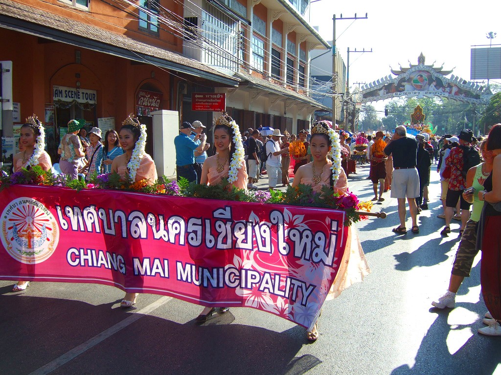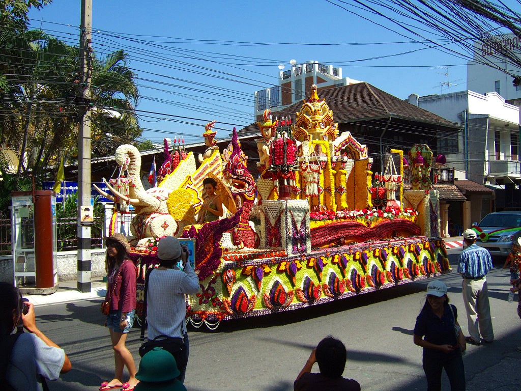 マスコットやサイドカーにミスチェンマイが乗ってパレードが始まる。最初の山車は軍関係か王室の関系のようです。