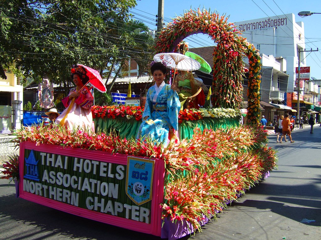 写真は花祭りパレードの様子。
