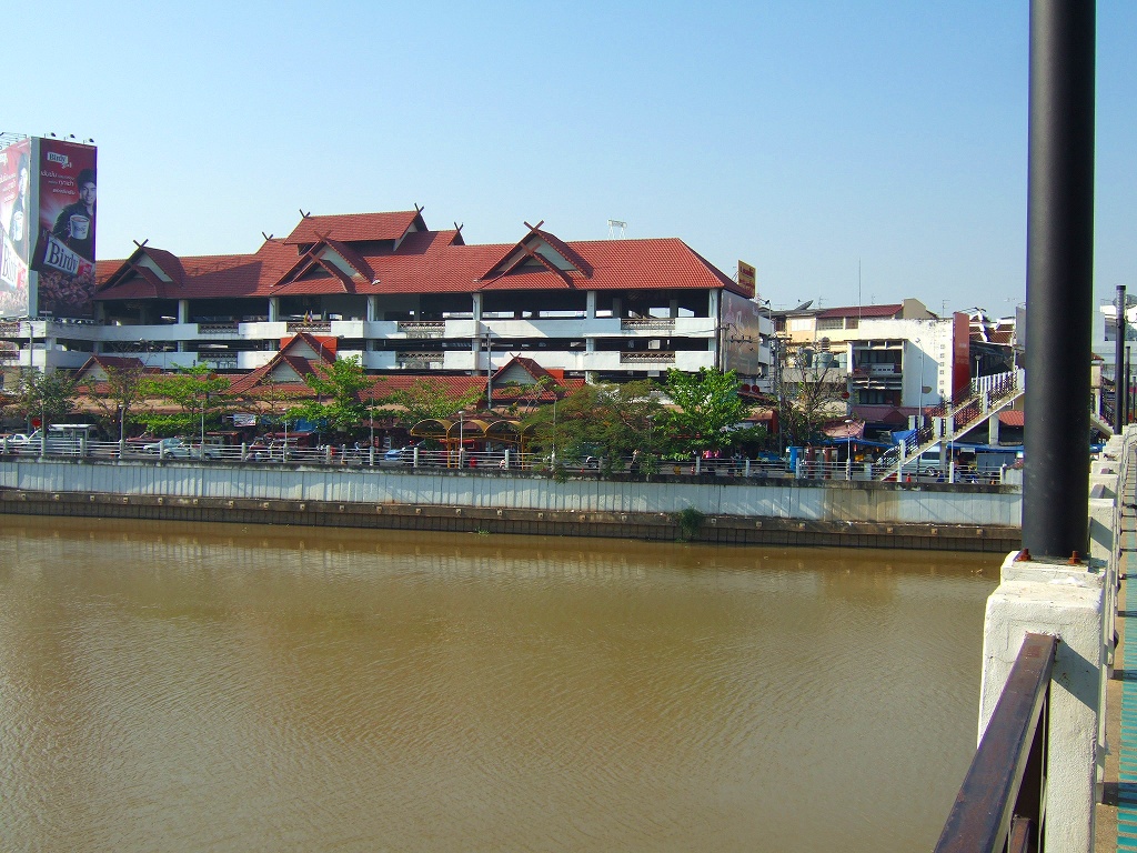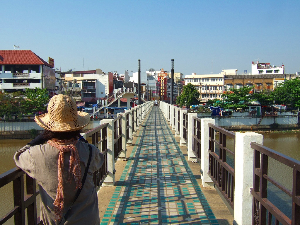 午前中は川沿いを散策する、まずナワラット橋を渡り、川沿いを北上、トンラムヤイ/ワロロット市場に向かって架かる歩道橋をわたって市場へ出る。 |