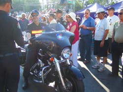 朝食後ナワラット橋方面へ出かけると既に大変な人出であり、アメリカ人のハーレーが先導する様子。ツーリストポリスという国際組織が協力している様子。アメリカ人の他日本人も居る。