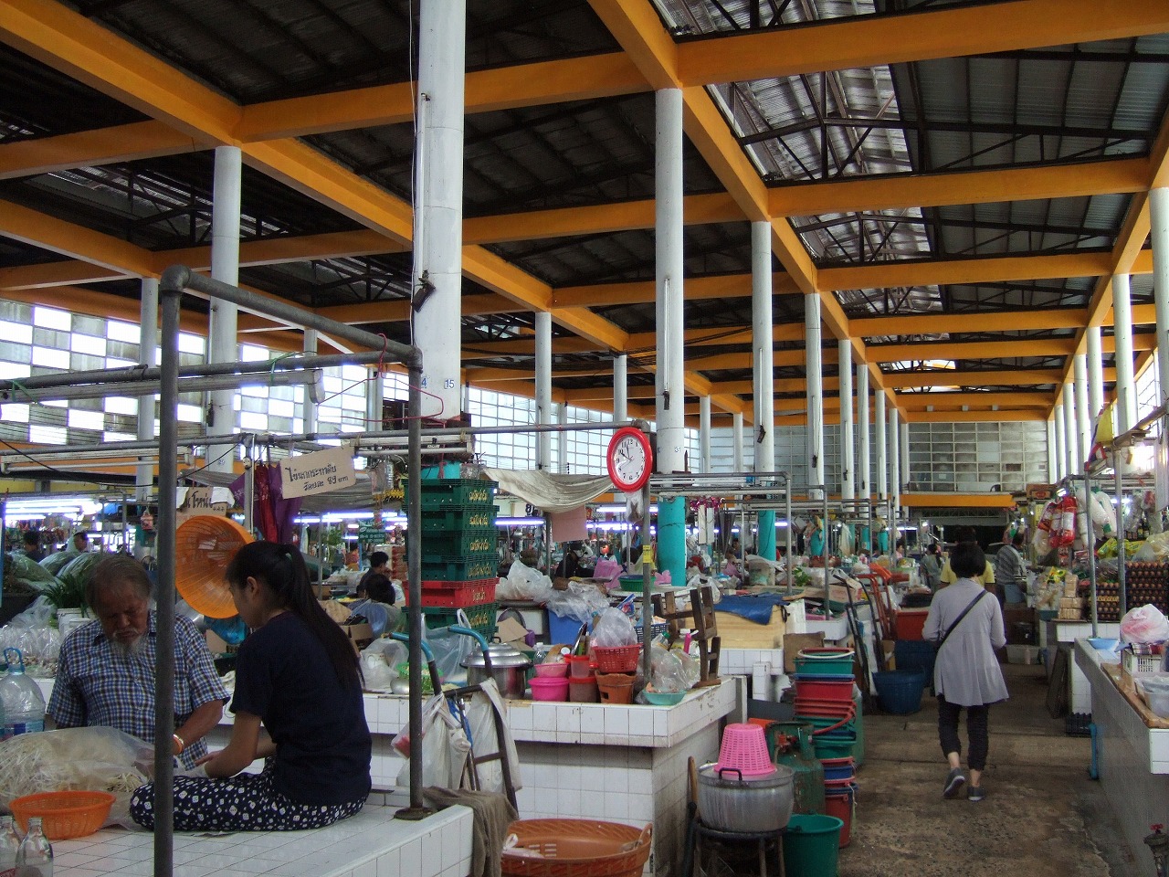 | 第4日 7月29日(金曜日) 第5日 7月30日(土曜日) 今日はチャオプラヤー川対岸のトンブリ地区にある、ウォンウィアンヤイ鉄道駅と、その近くにあるというローカルマーケットを見物に行くことにする。 早朝の部屋の窓から見下ろしたスカイトレインのサパーンタクシン駅とチャオプラヤー川の風景並びにスカイトレイン駅から見上げた宿泊しているホテル。 左の写真に見える電車の駅から橋を超えていく方角へ向かう。 スカイトレインにて2区間トンブリ側(チャオプラヤー川の対岸地区)へ移動し、北方にある大きなロータリー式 交差点の近くにあるウォンウィンヤイマーケットと同鉄道駅のプラットフォームを利用した露天市場を見物した。 国鉄駅駅構内への侵入は自由な様子。 なお、近くにあるロータリー式交差点は信号無しで左折専用で出入りし、一方通行の周回路を時計回りして方向転換をする交差点で、グーグルアースからコピーしたのが右図です。タイとオーストラリアではよく見かけ、非常に合理的でスムースな信号無し交差点です。中央にタクシン大王の銅像があり、公園のような作りになっております。 非常に大きなスペースを要するのが日本向きではないのかも。 ウォンウィアンヤイマーケットはタイに多いウエットマーケットと呼ばれる床が水を流して濡れているところから名付けられた形式の地元民専用のローカル市場です。 野菜から肉類、鮮魚、エビ・カニ・貝類、調理した料理、菓子・フルーツ類などあらゆる商品が並べられています。 鉄道はバンコク西部行の始発駅でずっと先に水上マーケットで有名なメークロン駅があります。 午後からは恒例のタイマッサージに。通常のフットマッサージでは膝から下を中心にしたマッサージですが贔屓にして毎度利用しているポンピモン・マッサージでは太ももの付け根までマッサージをしてくれるので半ズボンに履き替えていく必要がある。 夕食は時間を早めに2日目に訪ねた盛悦飯店という中華料理屋さんを訪ねる。エビの餡かけごはんのようなものと牛肉の炒め物、前回美味かった土鍋の煮込み料理を摂る。全部でチップ込600バーツほど。土鍋の煮込み料理が多すぎて半分残してしまう。 |