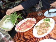 最初に肉と卵を混ぜてから鍋に入れる方式らしく、店員がそのように指導する。 あっさりとした味がシャブシャブだと断じているとごってりとした味のチムチュムは美味くない。タレはタイスキと同じような甘辛いタレでしたが卵をまぶした肉とは合わない感じがします。