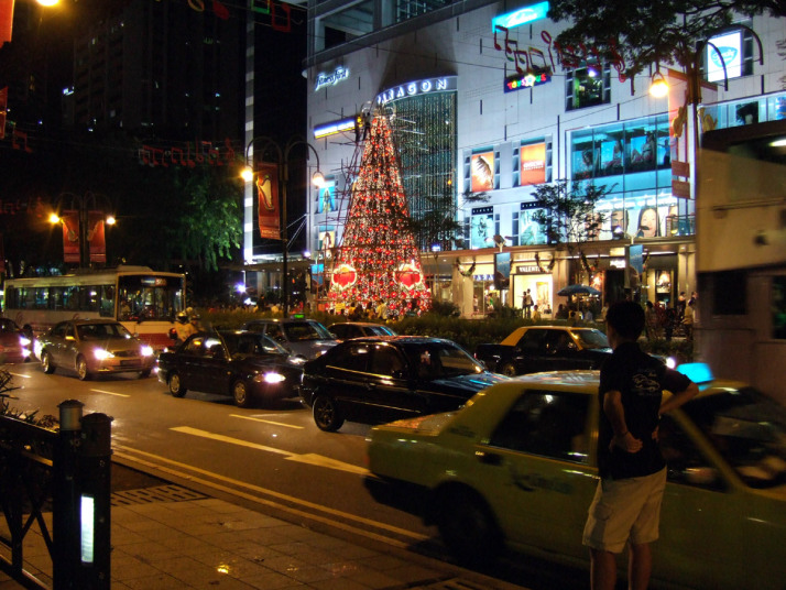 ホテル前 オーチャードロードの賑わい |