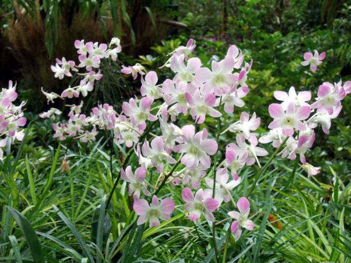 | シンガポール国立の植物園を訪れて、中にある有料の蘭園を散策しました。珍しい南国の花々が一杯です。 |