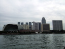 公園から望む対岸の風景 ドームは劇場らしい。有名なランドマークだと説明。 |