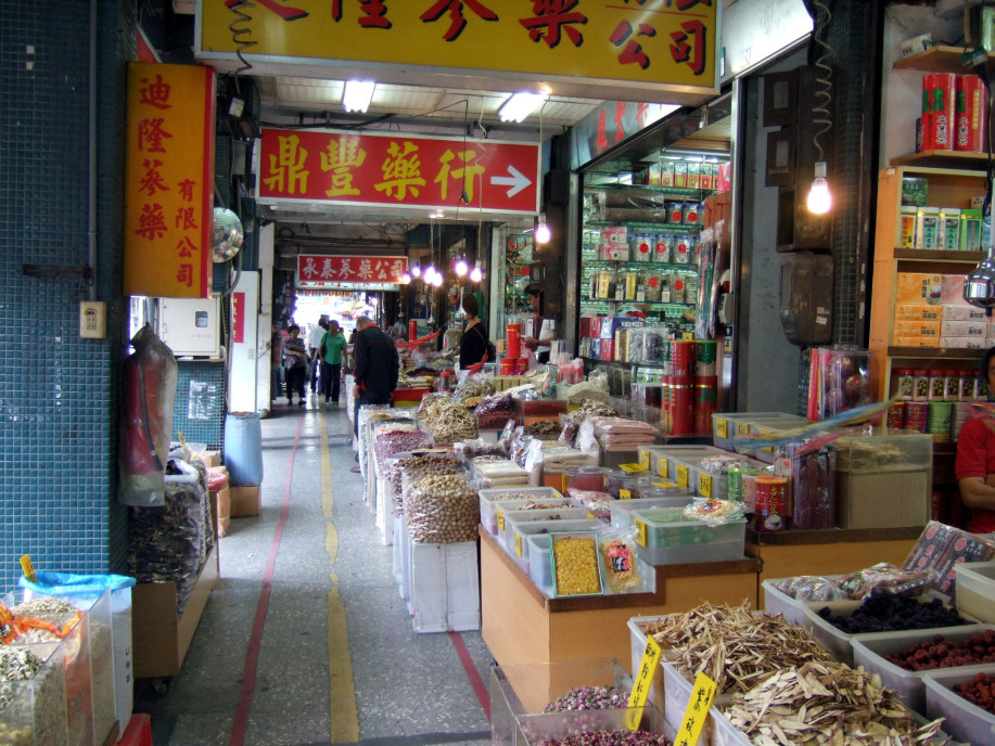 最初に付いたところが永楽市場でしたが、中へ入らずに町並みを見学しながら進む。台北市を代表する乾物の問屋街として有名で、日本人にはカラスミやドライフルーツ、お茶などが大変安く買える場所として有名です。