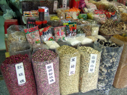 沢山の店が並んでおり、見て歩くだけでも楽しい所です。花を乾燥させた香りのハーブや、各種のお菓子、ドライフルーツなどが、一斤単位で売られていて居ます。梅干の蜜漬けなど、日本で買えば大変高価ですがこちらでは600グラム(一斤)で600円ほど、つい沢山買ってしまい、荷物が重くなって大変^^;