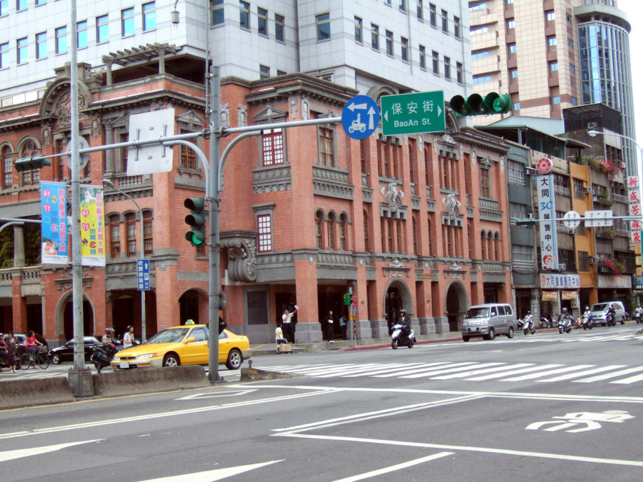 下の写真は迪化街から東へ進んだところで出会う重慶北路に出たところにある古い赤煉瓦の建物を生かした高層マンションのようでした。