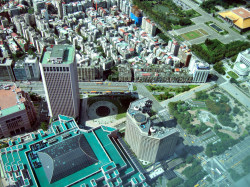 右下は見ろした写真、高層ビルが随分下に見えます。